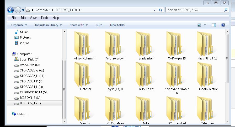 Jeff, thanks for sharing your work flow!!!! I used to make a back up of my working hard drive!!! I was backing up when the base hard drive died, this corrupted the back up as well!! I no longer back up but I use to seperate drive just as you do and I also just copy to the drive. If I add any new media I also add it to the second drive. I use a seperate drive to archive all my iso files once a project is finished. I have 7 drives hooked up to my computer but generally I am only running 4 at a time. I have not gone to raid o on my computer as yet. I found that Edius 5.0 needed at least an e-sata drive for media to work properly. Vegas can run on the USB drives, but it never runs real time off of any drive. (I have yet to put 10 to the test). I use almost an identical folder system as yourself as well!! Really important to keep all ones assets in one folder on one drive, then copy to the second!!!!!!!! Took me to many TKO's to learn that!!! I have just ordered a 600 gb velociraptor to put in my desk top for my working video drive. I plan to slowly replace all my drives with them as dollars come available.