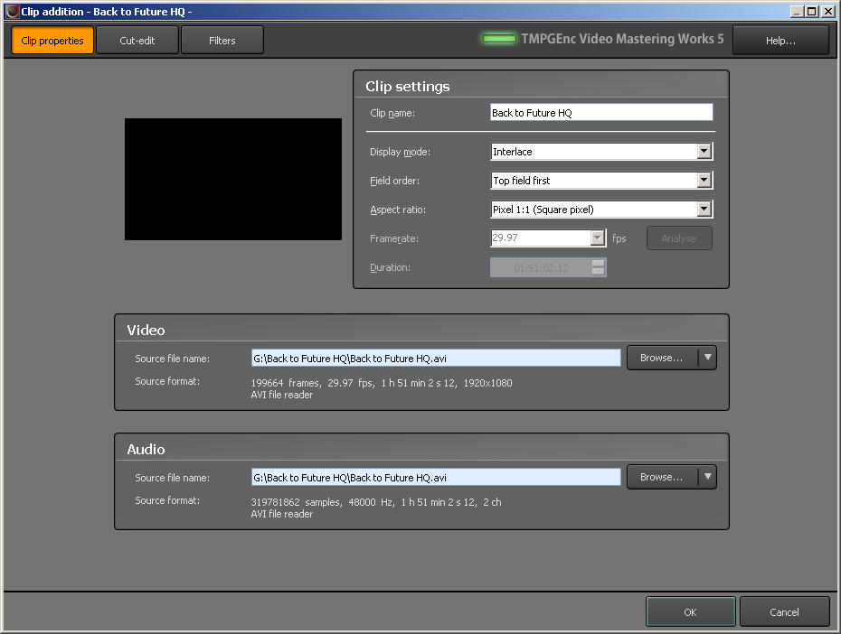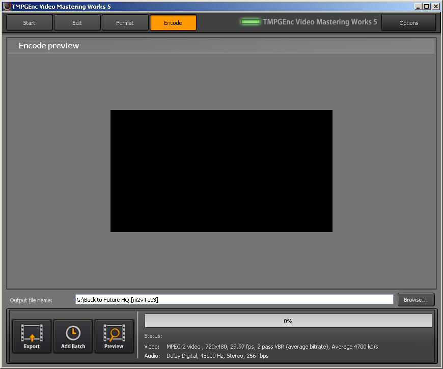 Good . When you 've played with the defaults you may want to look at the help file a little and familiarize yourself with the filter section. Of particular interest is the re size filter which is always active. If you are downsizing square pixel input you should uncheck the " keep aspect ratio" box for 16x9 as this will avoid side bars when played on a PC. Something I didn't want to confuse you with on your first try as it all still works.