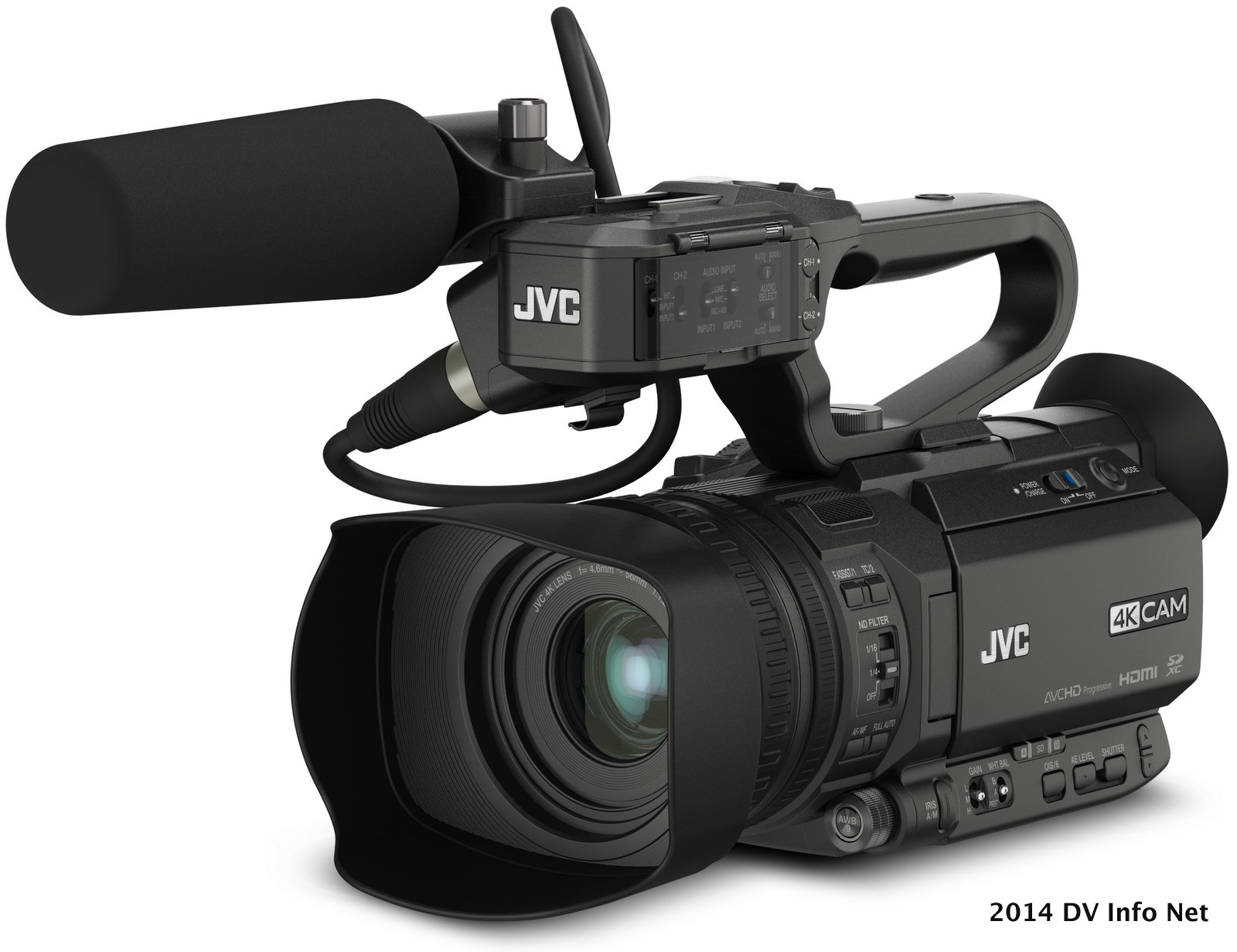 The 4KCAM product line is an ideal complement to JVC’s successful ProHD product line. All three new cameras feature dual SDHC/SDXC card slots for dual, backup, and continuous recording. The camcorders also include a 3.5-inch LCD display and 1.56 megapixel color viewfinder, both with smart focus assist functions, and offer two-channel audio recording.
