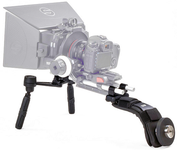 The Ace Shoulder Rig includes a Shoulder Mount and hand grips to allow you a ready to shoot solution. The shoulder mount offers a solid point of contact and support for secure and smooth off-tripod shooting.